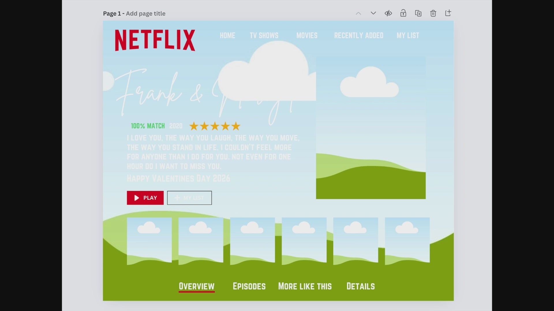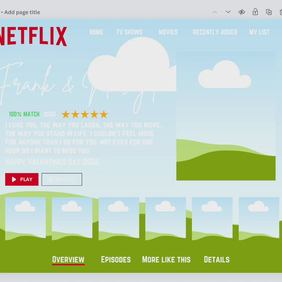 Create a one-of-a-kind keepsake with this Netflix-style digital Canva frame! Perfect for Valentine’s Day, anniversaries, or celebrating your love story, this editable template lets you personalize names, text, and photos to make it truly yours. Simply edit in Canva and display or print for a heartfelt gift they’ll never forget.